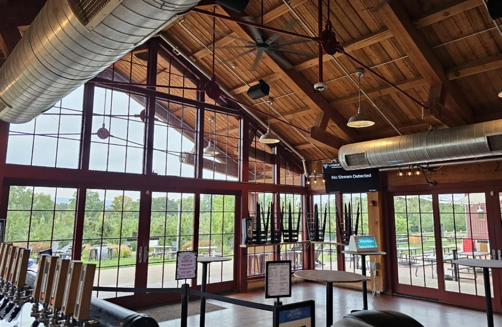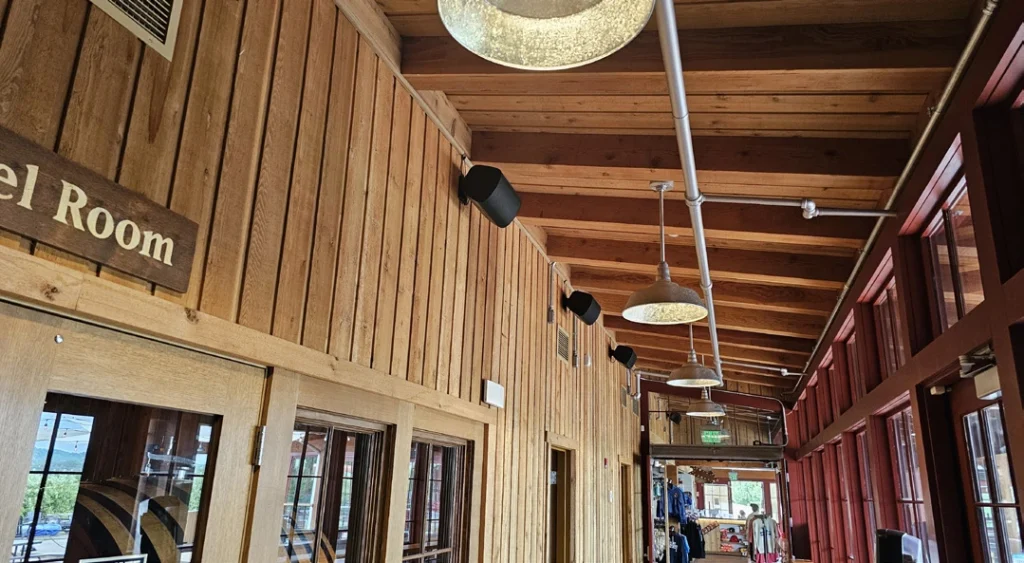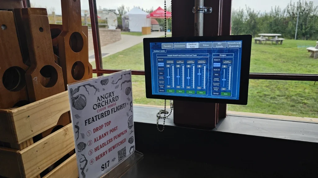 La Angry Orchard Walden Cider House, situada en el valle del Hudson (Nueva York), es más que una sala de degustación: es un destino en sí mismo. Los visitantes se mueven entre las dos plantas interiores, las zonas de terraza al aire libre y los espacios para eventos, pasando de degustaciones relajadas a multitudes en temporada alta y eventos en directo. La arquitectura cálida y diáfana y los acabados en madera natural son fundamentales para la experiencia de la marca, y el sistema de audio debía complementar ese ambiente al tiempo que ofreciese un sonido consistente y de alta calidad en todo el recinto.